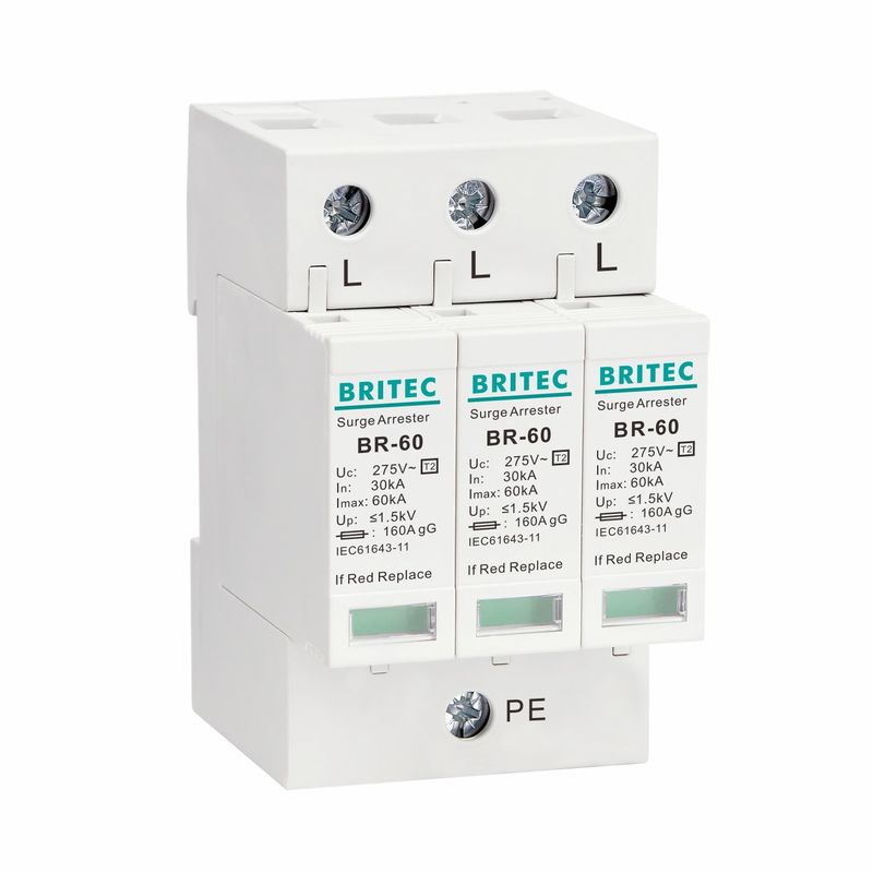 BRITEC 1P Klasse II SPD 60kA T2 Surge Arrester AC-overspanningsbeschermer bliksembeschermer